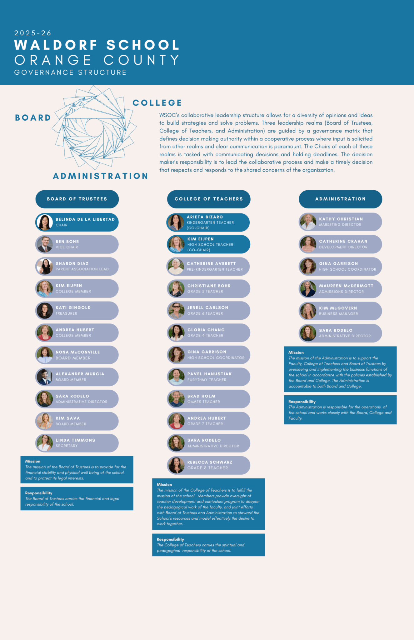 Amy Green-Bosinoff is the main lesson teacher for the Class of 2037. Amy discovered Waldorf education through a Waldorf-inspired cooperative preschool for her eldest child and quickly developed a deep appreciation for the pedagogy. With a background in education, she went on to further her studies, becoming a founding member of a Waldorf charter school and completing both the Foundations and Teacher Training programs at Waldorf School Orange County. Amy holds California teaching credentials in Multiple Subject Education and Single Subject Social Studies and has taught across grades 1–12 as a Waldorf class teacher. Her younger child currently attends WSOC, and she is thrilled to join the Class of 2037 as their Main Lesson Teacher. Outside the classroom, Amy enjoys camping and hiking with her family, learning new crafts, and experimenting with new recipes.
